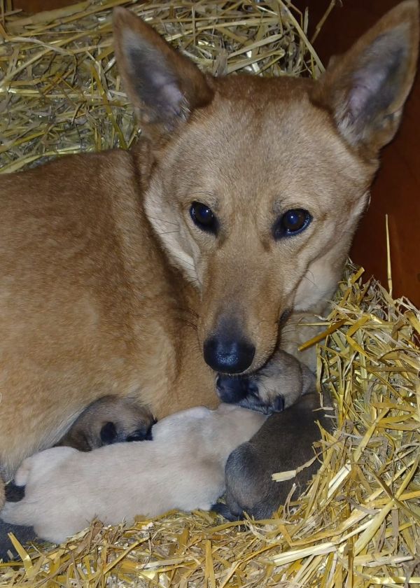 PUPPIES BORN 2026-03-28 2 red girls and 1 white/creme boy Mother: Chanco´s Shirin - "Vavva" Father: Taffy De Roc Noir Et Sable Blanc